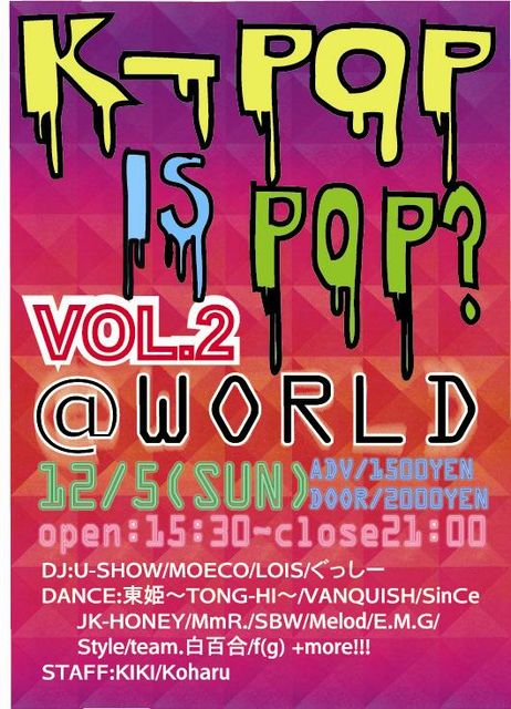 K-POP IS POP? Vol.2@世界WORLD(京都)
