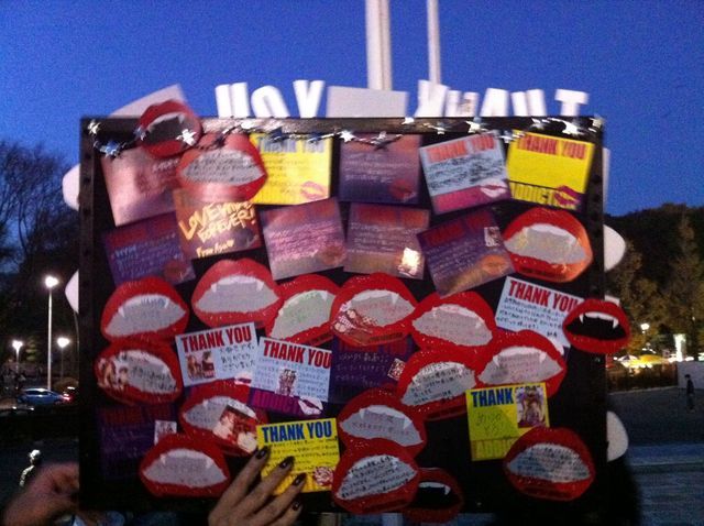 本日12月5日、無事にスタッフの皆様に完成したメッセージボードを届けることができました。 集まってくれた皆様、お声かけてくださった皆様、本当に本当に本当にありがとうございました!!!!!!!!! 楽屋中継カメラが外に来ていた時、近寄ったらカメラ向けてくださいました。 ばっちり映してくれました!!! メンバーたちが見ていたと信じています。 カメラマンのHさんにも写真撮って頂けました。 悔いはありません!!! 温かいお声かけてくださった皆様には感謝してもしきれません。 大切な思い出にします。 今日集まって