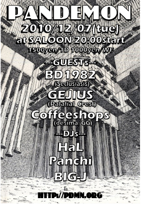 PANDEMONは2002年吉祥寺FORTH FLOORでスタートし、ELECTRONIC・HIPHOP・TECHNO・IDMなど、様々なジャンルを横断し、独自の視点でダンスミュージックの定義を拡張し続けているパーティである。過去にLa Mano Fria(Beta Bodega),ORGA(vibrant)、HALLY(VORC),等のアーティストを召いた。