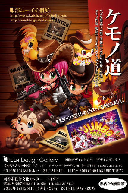 大変個人的な事で申し訳ないのですが地元で個展を開催する運びとなりました。 発売中の年末ジャンボ宝くじのイラストに採用された事による記念展です。 年末ジャンボ宝くじ公式HP http://www.yumedekireini.jp/ (CMをご覧下さい) 会場 国際デザインセンター デザインギャラリー ナディアパークデザインセンタービル4F 会期 2010年12月8日(水)〜12月13日(月)11時〜20時(最終日は18時半) オープニングパーティー12月8日6時より お誘い合わせの上どなたでも御参加下さい! 作家在廊日 8日(水)、10日(金)、11日(土)