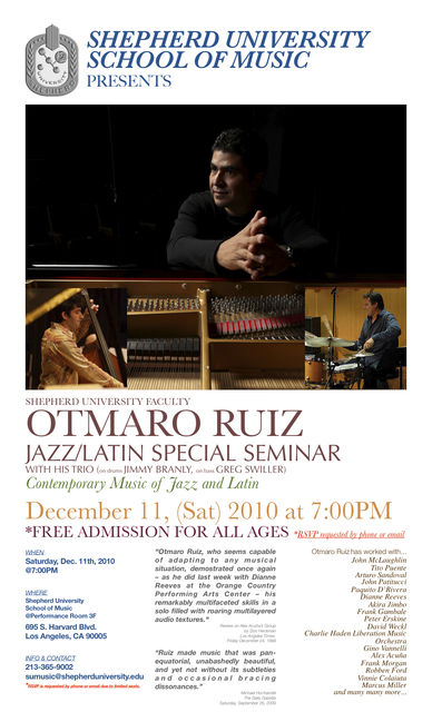 シェパード大学主催 敏腕ジャズピアニスト オトマロ・ルイズによるジャズ・コンテンポラリーセミナー開催決定!!!
