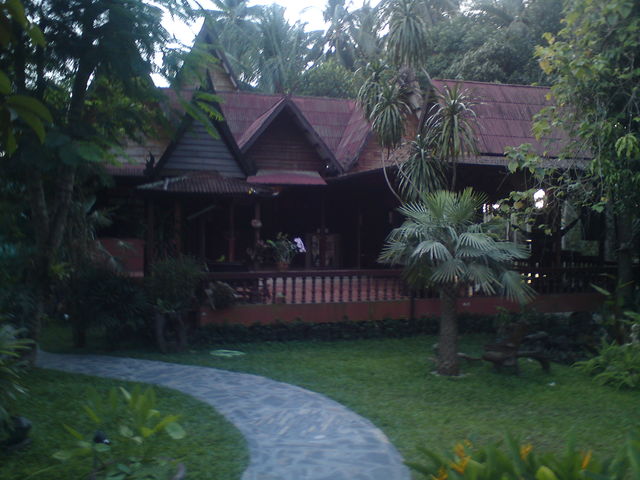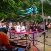 ジャングルの中には美しいフラワーガーデンと小さな川が流れ、ダンスフロアは自然の土。