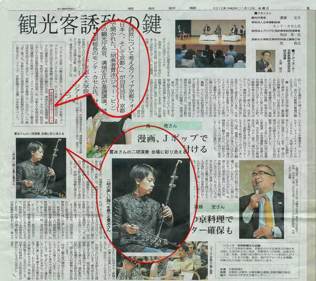 2010年12月23日(木・) 午前9:50〜11:50 滋賀県立男女共同参画センター (滋賀県近江八幡市) 視聴覚室 (JR近江八幡駅南口を出て真っすぐ徒歩で10分ほど進むと左側にあります。) <参加費 ¥3000 当日徴収> 中国のいろんな文化について、見聞きする機会は多いですか? 中国には、いろんな楽器、特徴的リズム、各地の劇、曲調、 そして漫才や民間芸などがあります。 それらは日本と似ているものもあれば、新鮮で面白く