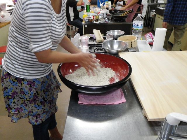第13回手打ちオフを開催いたします。 日時:12月25日(土) 場所:草加市勤労福祉会館(調理実習室:定員32名) 時間:10時〜18時を予定(9時〜21時30分まで貸切) 会費:2000〜2500円 会場までの行き方。 電車の場合、東武伊勢崎線「新田駅」を下車 改札を出て右の西口を出ます。 駐輪場の間の道を抜け、突き当たり(右に養老の滝有り)を左へ ブックオフの所を右に曲がりしばらく行くと道路の上に看板が出ています。 看板にしたがい左のスイミングスクールの隣になります。 会場は2階の調理実習室。 飲み物込みで