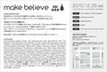 /ご無沙汰しています。make believeです。 半年ほど空いてしまいましたが、vol.18のお知らせです。 年内最後のmake believeは12/25(土)クリスマスに開催です。 今回は下北沢Lagunaで毎月第二土曜日に開催中の「Club Oh-Yeah!」よりyoeさんをゲストに迎え、更にレギュラーDJとしても参加しているakagawa (from Mazis)がアコースティックライブを披露します。 聖なる夜に皆さんのお時間を少しだけmake believeにお貸しください。 /// /// /// make believe vol.18 /// /// /// 2010.12.25.sat 18:00-23:00 Guest DJ:yoe (fro