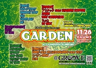 Killa Grass Muzik presents GARDEN」 2010.11.28(sun) @GROOVE 岐阜市柳ヶ瀬通4-10 パチンコOH一億2F TEL:058-263-5585 OPEN14:00.START15:00 / CLOSE23:00 ADV:2.000yen / ADM:3.000yen 中学生以下入場無料 高校生のみ1.000yen(学生証など提示) 前売りメールチケット ghetto-revolution@mail.goo.ne.jp - CAST - REGGAE》 音斬草.HYDRO-P.MAD FLAVAw/M-13 sound system DJ TOMIfrom郡上.VITALITYSOUND. HIPHOP》 アリタックfromKINGRASS HOPPERS.2DUBA. DJ SHOT.BEAT CONNECTION.ちょっQ. 《BAND》 DUB O THIRTY.RAMDOST
