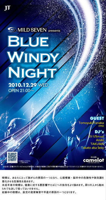 12/29(水)"Blue Windy Night"@渋谷Camelot ●年末スペシャル SYSTEM MEN¥3500/2d WOMEN¥2500/2d HAPPY HOUR 21:00〜23:00(MEN¥1000/2d WOMEN ENTRANCE FREE) GUEST DJ Tomoyuki Tanaka (FPM) MAIN : DJ U5(Prog5) / Ando / TAKUMA / Takato aka Sexy HIPHOP DJ : JUNE / SHINTARO / HIRO / DARYL HOUSE DJ : TAKU☆JAPAN / ke-ji / kotaro / hayato ※※※ メッセージ頂ければゲスト料金(男性2000円/2d、女性1000円/2d)にてご招待させて頂きます! おおまかな人数と代表者の お名前を添えて直接メッセージ下さい! ※※※ オ