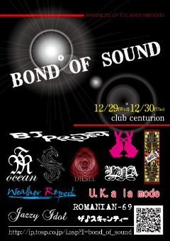 POSSIBILITY OF THE NOISE VOL.15/2DAYS 〜Bond of Sound〜 2010.12.29 桑名 CLUB CENTURION OPEN/17:00 START/17:30 ADV/\1500 DOOR/\2000 GENRE/NON GENRE ARTIST/ TMオーシャン peke_peke ROMANIAN-69 DIESEL BJ PROJECT BAND S'mArK. …etc