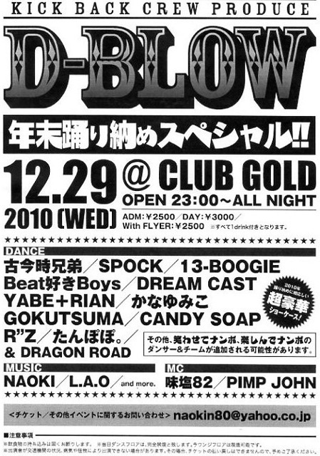 FEE: W/F 2.500yen(1d) : DAY 3.000yen(1d) おつまみ+協賛PRESENTあり!!