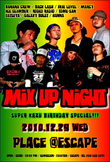 今年最後のビックパーティに相応しいスペシャルゲストには、あのオールミックスDJクボタタケシと“CUBISMO GURAFICO NEILI&RAIZA”から松田チャーべ岳二が登場!!
