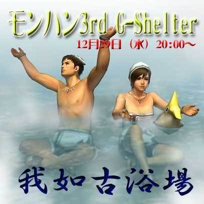 2010年の狩り納めに遊びに来ませんか〜? 「モンハン3G-Shelter 〜我如古浴場〜」 と題して、モンハン3イベントやります! 普通の集会所として楽しむ以外に G-shelterのプロジェクタ&音響で大迫力モンハンも出来ます!! 昨日試したけど、ヤバかったwww タイムアタックやったり、モンハンどうでしょう見たりする予定。 回復薬、鬼人薬など、我如古浴場オリジナルドリンクもご用意。 24の浴場をご用意しておまちしています。 一応、雪山の山小屋もあるはず。 ★☆★☆★☆★☆★☆★☆ 「モンハン3G-Shelt