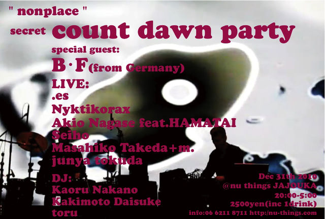 12.30.thu ”TOO DRUNK TO FUCK!!” LIVE : KING KURTIS FLY / BESHALIST / BONG BROS / RIKIO BRAND / WORD TANK / ASD BELLOW(DCQ) / 孫GONG / レイリ DJ : HAMATAI(BANG A RANG) / YUKA (satisfaction) / SOKSTAR / ぷっちょ / cointoss(WORD TANK) / RISKY OPEN /START 22:00/AD.1,500/DO.2,000(共にドリンク代¥500別途必要) @京都whoopee's http://www.whoopees.net/ 31 fri 20:00-5:00 2500yen(inc 1drink) [ " nonplace " - secret count dawn party - ] 2010年、ノルウェーの超モダンなジャズグルー