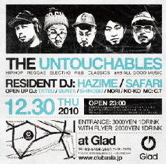 2010年9月22日第4水曜日の祝前日に渋谷VUENOSにて盛大に開催されたNEW PARTY"THE UNTOUCHABLES"がいよいよ帰って参ります。 ここ渋谷円山町で、圧倒的な存在感を放ち続けるDJ HAZIMEと DJ SAFARIの2人が創り出す空間を是非、体感してください!! ※※※※※※※※※※※※※※ ゲスト受付ておりますのでお気軽にメッセージ下さい! ご面倒な方はGladのエントランスにてDJ TATSUのゲストで「ドリーム」と言って頂ければ何名様でもゲスト料金(1500/1D)にてご入場出来ます! ※※※※※※※※※※※※※※ 12月30日木曜日 〜TH