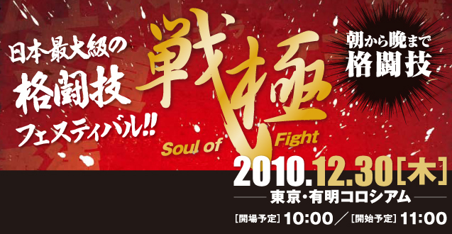 予想大会、やります! 対象の興行で誰がどうやって勝つかを予想するものです。 今まで参加したことがある人も、参加したことがない人も、 寄ってらっしゃい、見てらっしゃい! 予想対象試合が決定しましたら、メッセにて送信しますので、 予想を書いて返信してください!! まずは、参加の意志をコメントしてください。 ▼PND!! 予想第四陣(10月〜12月期間) ―其の五 予想興行― 2010年12月30日(木) 戦極 Soul of Fight 東京/有明コロシアム 開場10時00分 開始11時00分 ※予想得点P 勝者的中[1P] 立ち技は決