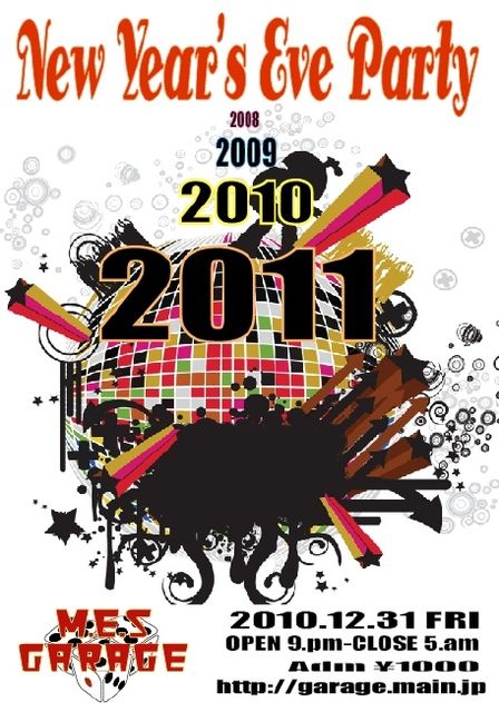 『New Year's Eve Party』 【日程】2010.12.31 【場所】Garage 【時間】OPEN-21:00 【料金】\1,000(別途1DRINK) http://garage.main.jp/party.html 〒 960-8036 福島県福島市新町2-12 FPビル 2F 大晦日は、 主催ダンス・イベントで お世話になった、 club Milgram、Garageでの カウントダウンパーティーで 一年間を締めくくります! 大好きな友だち、 福島のREGGAE SINGER MINTAKA も出ます! 大晦日も歌いましょう! ご来場、お待ちしています!