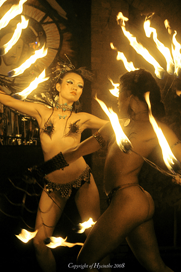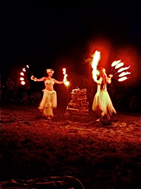 ファイヤーダンサー達に寄る新年の祝いの舞