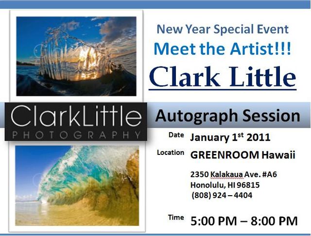 きれいで迫力のある彼の作品はプロサーファーであり幼い頃からノースショアの海で育った彼だから出来る技。そんな彼が元旦に2011年最初のイベントとしてサイン会が急遽決定!