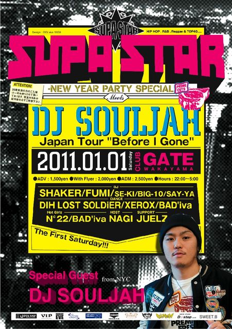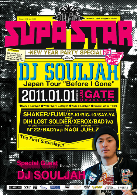 2011年一発目のSUPA STARは、1月1日(土)、ゲストにNew Yorkを拠点に世界各地で活躍し、