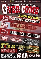2009年2月からスタートした!!NEW DANCE OVERCOME!! 大阪・関西を背負っていく若手SOUND、DEE JAYが集結! 毎週水曜日アメ村Club Jouleでスタート! 【毎週水曜日CLUB jouleにぜひ遊べに来てください。 間違いなく楽しめる夜になります!! 2011年もOvercomeよろしくお願いします。】 【 Overcome 】 @Club Joule OPEN 22:00 ~ CLOSE 5:00 ADM:1500yen(W.1D) 1時までLadys1000yen(W/2D) 【1月5日】 新春 RUB A DUB NIGHT SP "DEEJAY" APOLLO DADA EJISON RAM HEAD SHADY TRIGGER AND MORE..