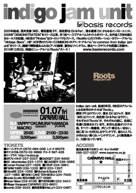 繊細で郷愁感あふれるピアノの旋律,豪快なツインドラム,極太ベースサウンドを武器に活動中のインスト・ユニット〈indigo jam unit〉。