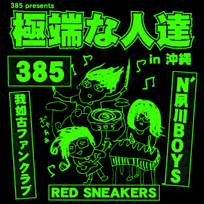 告知スペース失礼します!! 関西代表ガレージバンド「キングブラザーズ」のメンバーの別ユニット「N'夙川BOYS」と 東京で活動中元BLEACHのミヤ(ベース)のバンド「385」など4バンドが来沖!! 1/7(金)と1/8(土)に出演イベントあります!! 是非あそびにきて下さい! ★1/7(金) 「新年祝賀わの儀」 http://bit.ly/fqBcrQ 【出演】 N'夙川BOYS(西宮) RED SNEAKERS(奈良) the シガーズ(大阪) ウルフズ(沖縄) ※シークレットゲスト BOBO(385スペシャルメンバー)(東京) 【日時】 2011年1月7日(金) 【