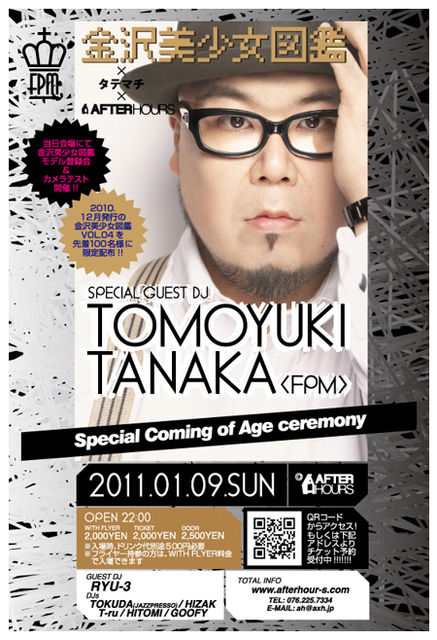 管理人様告知失礼致します。 AFTERHOURSが贈る新春スペシャルコラボ企画!! 美少女図鑑 x タテマチ XAFTERHOURS 新成人大歓迎!!旧成人も大感激!!美少女大激震!!これで盛り上がらない訳が無い!!会場は@AFTERHORS "DAISHI DANCE / THEO PARRISH / Francois K / Larry Heard(Mr.Fingers ) / Derrick May ....... など国内外ビックアーティストのイベントをも開催している『AFTERHOURS』!! 2011年新春スペシャルコラボ企画『FPM(Tomoyuki Tanaka)x 美少女図鑑 x タテマチ @ AFTERHOURS 』 新年を迎え、最高に盛り上がる空間にてスペ