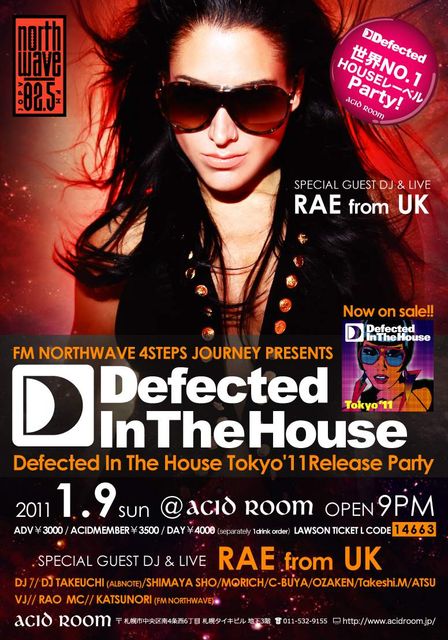 9日(土)夜ですが、札幌のクラブ『ACID ROOM』にて世界No.1のHOUSEレーベルParty Defected In The Houseがございます。