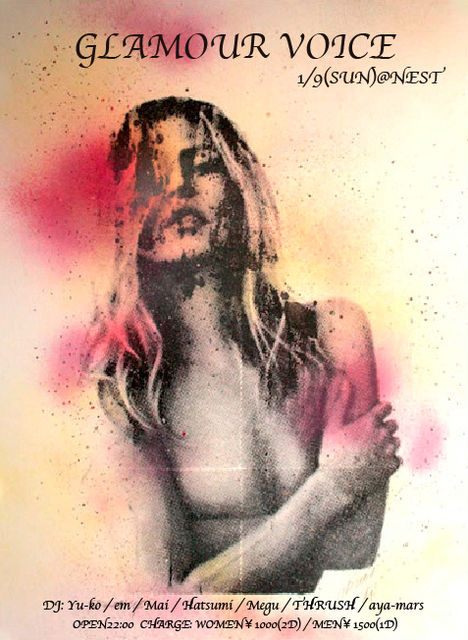 管理人様、告知失礼します! 今週末日曜日、All Girl DJs!! 女の子らしい選曲から、男子に負けないくらいの男前なPlayまで楽しめるParty♪ しかもかなりリーズナブル〜!! 特に女の子!! 美味しいお酒と、最高の音を楽しみに是非♪ GLAMOUR VOICE ~Girl’s Party 2011/1/9/Sun @ Sound a Base NEST http://www.club-nest.com/ DJ: em / Mai / Hatsumi / Megu / thrush / aya-mars/ Yu-ko ■OPEN22:00 ■CHARGE: WOMEN¥1000(2D) / MEN¥1500(1D) ■HOUSE / TECHNO/ R&B/ Underground Hip Hop and more… 貴重なス
