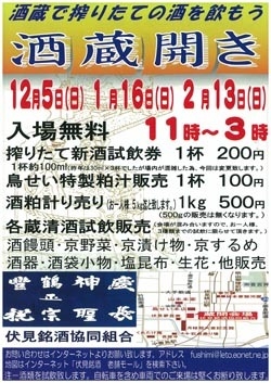 今回で2回目になります。 全3回 最終は2月13日(日) 参加料200円(お猪口もらえます) もらったお猪口で、きき酒呑めます。 うまい新酒が呑めますので、是非、行ってみて下さい(^o^)丿 管理人&新くらぶ 仁メンバーは13時頃いく予定です。 (管理人は、JIN'S BAR オリジナルトレーナー(紺色)を着ています) では、会場で(^.^)/~~~