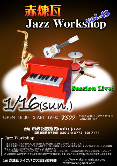 「赤煉瓦のカフェでジャズを楽しむ」ライブです。 内容は、ジャムセッションです。セッション参加でも、もちろん観客としてお楽しみいただいても結構です。お客さんは、若い人からお年寄りまで幅広く来ていただいています。 楽器をプレイする人、「ジャズってどんなのかな?」と気軽に見てみたい人、音楽好きな人たちと歓談したい人、音楽を楽しみたい人どんどん来てください! ジャズの中でも、比較的よく知られた曲を演奏することが多いので、ジャズ聴いたこと無い・・という方でも馴染みやすいかと思います。 一見さんも常連さんも、ジ