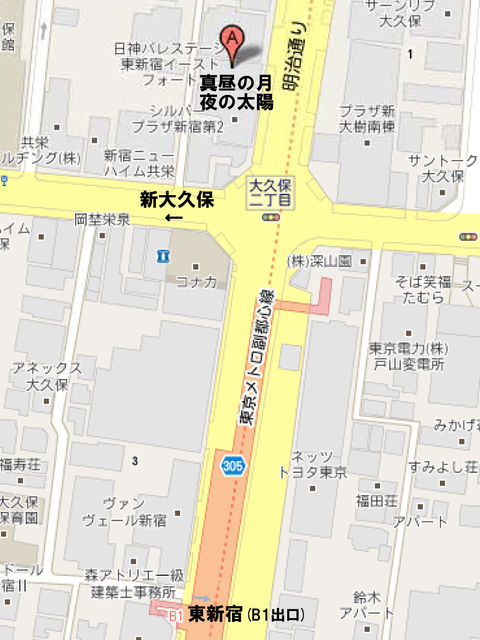 1/19(水) 真昼の月 夜の太陽(東新宿) http://mahiru-yoru.com/index.html 「'S Wonderful!」 開場…18:30 開演…19:00 出演…20:20(4組中3番目) 料金…\2000(前/当) (+1drink) 他出演者 19:00〜 tamaサン 19:40〜 瑠愛サン http://mixi.jp/view_community.pl?id=4221471 21:00〜 山崎智咲子サン アクセス ・東京メトロ東新宿駅徒歩2分 (大江戸線・副都心線) ・JR山手線新大久保駅徒歩8分 ・JR総武線大久保駅徒歩12分 ・JR山手・中央線新宿駅徒歩17分 ・西武新宿線西武新宿駅徒歩14分 新宿区大