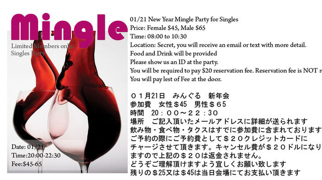 管理人様、2011年もこの場をおかりしてパーティーの告知をさせていただきます。。今年もよろしくお願い致します!