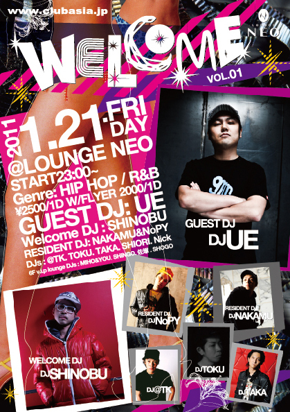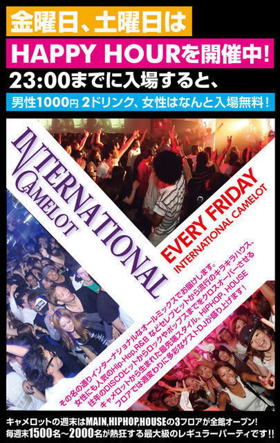 HAPPY HOUR 21:00〜23:00(MEN¥1000/2d WOMEN ENTRANCE FREE)