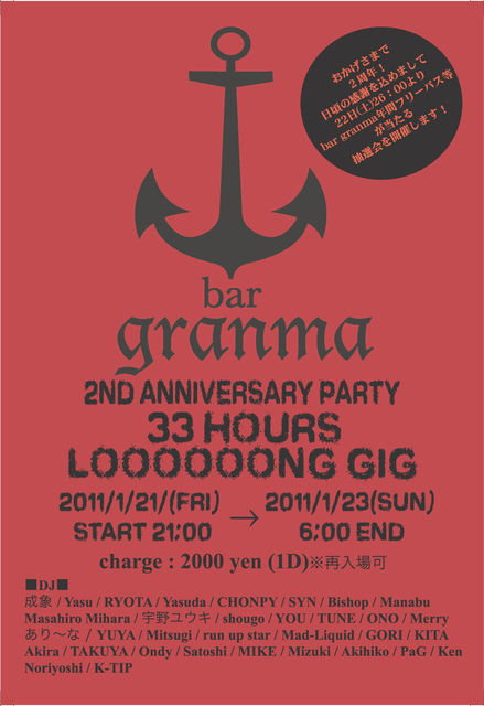 ADV:1,800YEN/DOOR:2000YEN(ともに別途ドリンク代500円かかります)