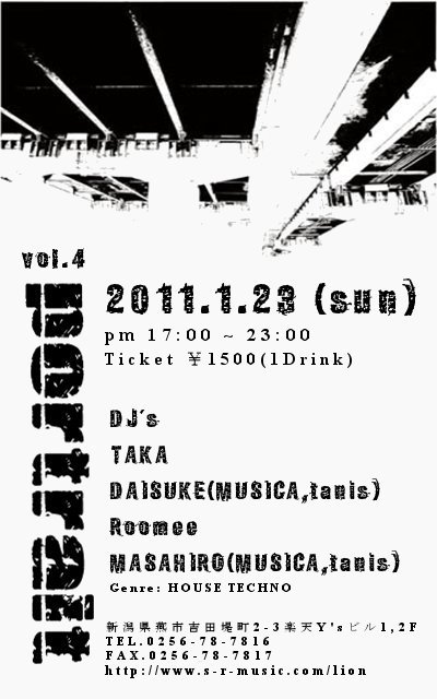 管理人様、告知をさせてください。 明日!音楽食堂において開催する定期ライブイベント「RISE」 今回のSPECIAL GUESTは「FOOT STAMP」となっております。 【RISE Vol.9】 日時:1月23日(日) 開場 16:00 開演 16:30 会場:長岡市大手通1−4−17安栄館ビルB1F音楽食堂 料金:1500円(税込ドリンク代別) 高校生以下 500円(税込) 出演:FOOT STAMP / ERDE of TRANCE PLANETARIUM / 太陽神アポローン / トマトレッド / the ADVANCE / パスカル / 猫義義 / MAGIC MUSH ROOM お問合せ:0258-32-9336 ongaku@xbs.jp 各出演者 「音楽食堂H