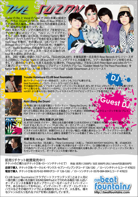 "CLUB beat fountains"が、"THE SUZAN"を初めて名古屋へお迎えしたスペシャルオールナイトパティー☆