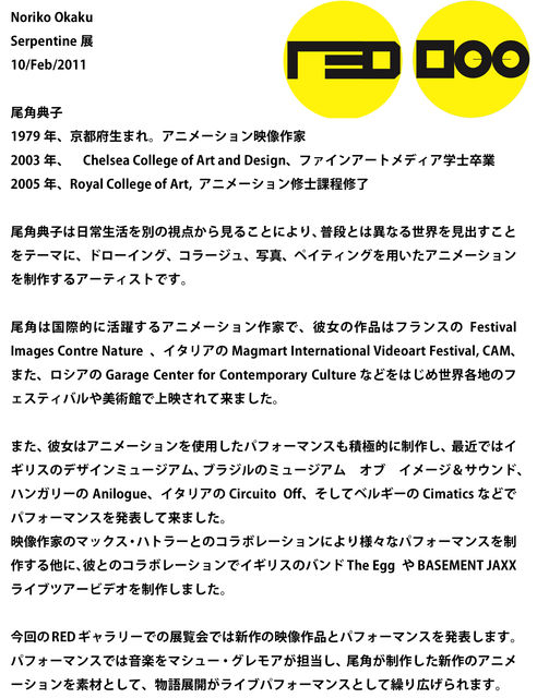 明日木曜に日本人アニメーション映像作家、NORIKO OKAKUさんが Red Galleryでエキシビジョンします,Tomoki TamuraもDJで参加。