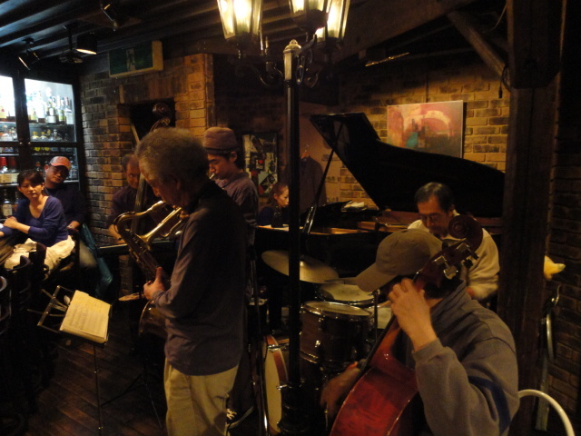 2011.2.2(wed) open:19:00 start:20:00 charge:\1,800/(DRINK 別途) place:DOT COOL(静岡市葵区常磐町1-5-4パレスビル6F) http://www2.tokai.or.jp/DOTCOOL/ ?:054-273-3466 ■Bass…中山博之(Nakayama Hiroyuki) T.sax…村松末治(Muramatsu sueji)[スエジテナー http://mixi.jp/show_friend.pl?id=24111187] Trumpet…藤田純平(Fujita Jumpei)[jumpei http://mixi.jp/show_friend.pl?id=7871677] Piano…白鷺紀子(Shirasagi Toshiko) [シラちゃん http://mixi.jp/show_friend.pl?id=22977525] Drums…富