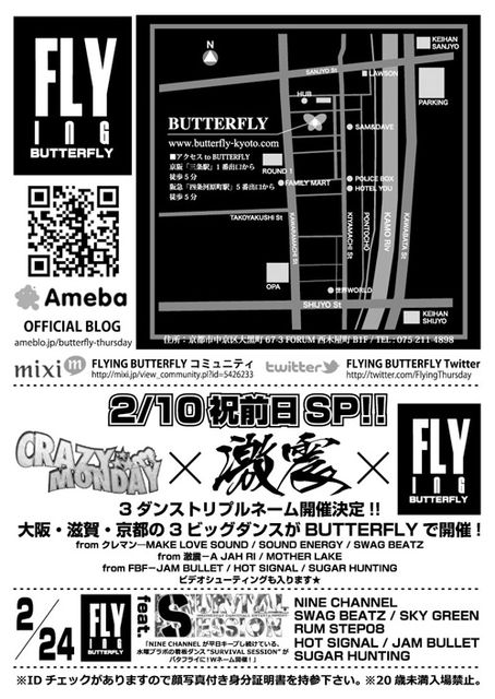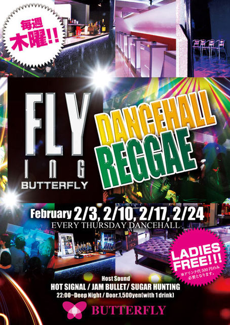 京都に誕生した、今話題のクラブ【BUTTERFLY】にて 毎週木曜日レゲエイベントが始まっています クラブ・バタフライって キャパシティ600〜700名という大箱!!場所は、京都・木屋町の"Bar isn't it" "BAR bowl"跡地 になります◎ 全面改装済みで、12/25にオープンしたところ!! 今まで行った事ある方も内装がガラッと変わり、絶対ビックリするオシャレな箱に変わっています◎ ジャンルはヒップホップを軸にR&B、レゲエ、 ハウス、オールジャンルイベントが展開中 ↓iflyerで見てみる↓ http://iflyer