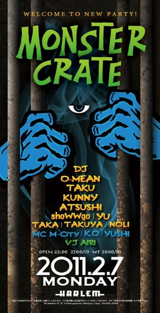 管理人様、告知失礼します。 今夜2/7(月)に渋谷ハーレムにてDJタイムオンリーの新イベント「MONSTER CRATE」が開催されます 書き込みやメッセージ等で連絡もらえれば、¥1500/1D のゲストにて招待させていただきますので気軽に連絡してください イベント詳細です 「MONSTER CRATE」 10.2.7 (月) OPEN22:00〜 渋谷@HARLEM ○DJ - O-MEAN,TAKU,KUNNY,ATSUSHI,shoWWgo,YU,TAKA,TAKUYA ○MC - M-City,K.O,Yushi ○VJ - AIRI とんでもないDJ TIME ONLYのNEW PARTYがスタートします…。 現在ROYAL FLUSH出演中のD