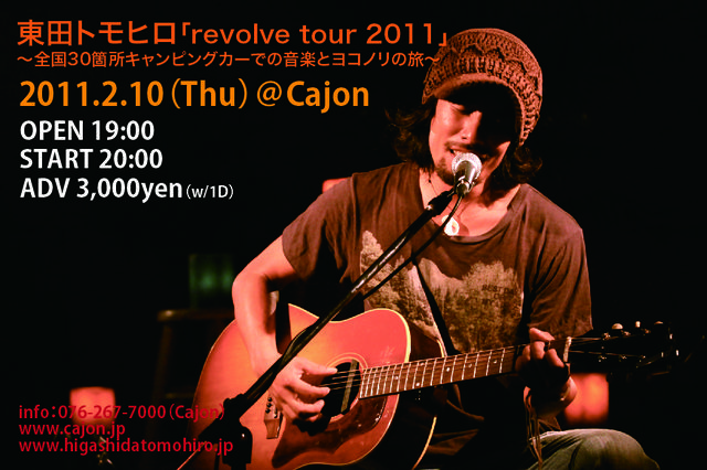 2011.2.10(thu) 東田トモヒロ Live@Cajonの詳細が決定しました! 【東田トモヒロ】 プロフィール 熊本県出身+在住。自らのライフスタイルを昇華した「歌」のメッセージで、 自分を表現し続けるシンガーソングライター。「LIFE MUSIC!」「歌」=「生活」。 「自然」「音楽」「人との繋がり」を大切に考え、嘘のないシンプルなライフスタイルを実践する、そんな人間性が、彼の魅力の一つといえるだろう。 小さなカフェからFUJI ROCK FES、RISING SUN、SUMMER SONIC、ap bank fes などの大型フェスまで、リスナーと同じ空間をシェアで
