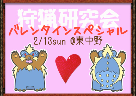 お部屋でゴロゴロしながらたっぷり11時間一緒に狩りを楽しみませんか? 「課題クエスト」にて当方より武器を指定させていただく可能性がございます。 幹事は女性ですので、女性ハンターもご安心ください バレンタインスペシャルなので、課題クリアの報酬はもちろん… 場所:東中野レンタルスペース(東中野駅西口目の前 ファミリーマートのあるビル2階) 東京都中野区東中野4-4-5 東中野アパートメンツ203 定員:20名 開催時間:10時〜21時(11時間) 持ち