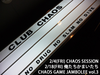 ★俺たちかまいたち x CHAOS GAME JAMBOLEE vol.3 CHAOSより初のストリーミング放送を実施!! PM8:00/PM8:00 1000円(1D) なんと俺たちかまいたちが、ライブハウスに殴り込み!! 内容は当日にならないと全くわかんないですw ケオオスのゲームパーティーに俺かまが革命を起こすのか!?