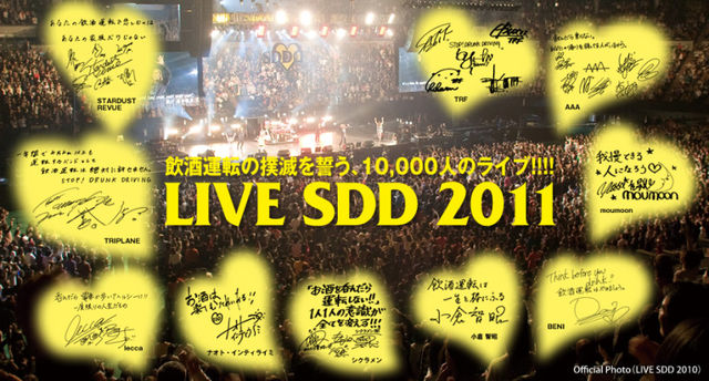 開催日 : 2011/02/20(Sun) タイトル : LIVE SDD 2011 会場 : 大阪城ホール 住所 : 大阪市中央区大阪城3-1 連絡先 : FM OSAKA 内容 : 出演者: STARDUST REVUE / TRF / TRIPLANE / AAA / lecca / moumoon / BENI / ナオト・インティライミ / シクラメン and more・・・ 総合司会: 小倉 智昭 応募方法: 抽選での招待制。 詳細は、”SDDオフィシャルサイト”をご確認下さい。 http://fmosaka.net/sdd/ 抽選申込受付期間: 第1回:12月1日(水)〜12月5日(日) 第2回:12月7日(火)〜12月12日(日) 第3回:12