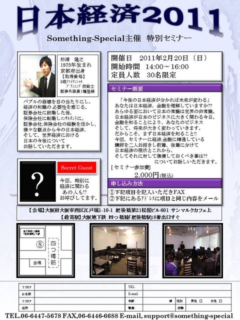 【今後の日本経済が分かれば未来が変わる】 あなたは日本経済、金融を理解していますか?? あらゆる面において日本の常識は世界の非常識。 日本経済が日本のビジネスに大きく関わる今日。 金融を知ることにより、あなたのビジネス そして、将来が大きく変わっていきます。 だからこそ、まず日本経済を知ること!! 今回、セミナーに経済,金融に精通している 講師を二人お招きし前篇、後篇に分けて 日本経済の現状とこれから、 そしてそれに対して準備しておくべき事は?? についてお話しいただきます。 【日時】 201