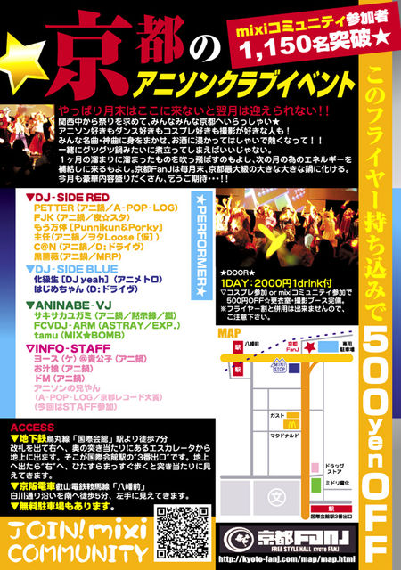 ▲▼▲▼▲▼▲▼▲▼▲▼▲▼▲▼▲▼▲▼▲▼▲▼▲▼▲▼▲▼ キチョーメンな性格でね、キチッと言っておきたいんだ………… おまえは千葉でアニソンクラブイベントがあったら、 キチッと毎月かかさず行くだろう? 誰だって、そーする、おれもそーする。 几帳面な性格でねーーー 毎月必ずやると言ったらやる!これが予告だ!!! 盛り上がる覚悟はいいか?オレはできてる!!! ▲▼▲▼▲▼▲▼▲▼▲▼▲▼▲▼▲▼▲▼▲▼▲▼▲▼▲▼▲▼ 一晩中アニメソング、ゲームソングを聴きながら 一緒に騒ぎましょう