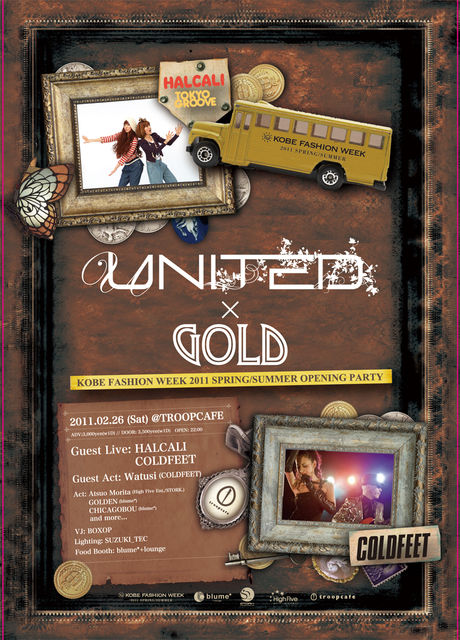 ファッション都市神戸をもっとお洒落で楽しい街にしよう、多くの人に神戸に来てもらおうと、地元企業、ショップ、行政等が連携し2006年にスタートした『神戸ファッションウィーク2011 S/S』のオープニングパーティーを飾るのはUNITEDです。UNITEDでは毎回時代をリードするスペシャルゲストアーティストを招き、華やかな時間をご提案します。 http://kobe-fw.jp/ UNITED×GOLD KOBE FASHION WEEK 2011 S/S OPENING PARTY 2011.2.26.SATURDAY/22:00- @TROOPCAFE,KOBE http://www.troopcafe.com ADV:3,000yen(