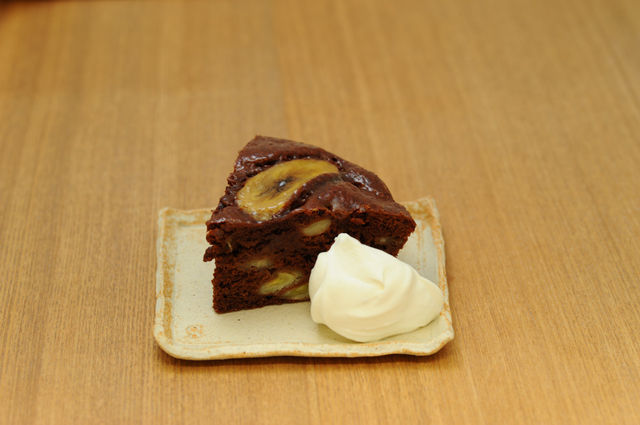 パンメニュー ライ麦パン…ずっしり食べ応えのあるライ麦生地にレーズンの甘さと胡桃の食感をプラスし、ほんのりライ麦の酸味が味わえる食べやすい配合で焼き上げましょう。胡麻の風味が食欲をそそります☆ 薄くスライスしてオープンサンドにしたり、チーズのお供に♪もちろんドイツビールなんかとも相性抜群です!!! ※持ち帰り→1本(サイズ…パウンド型18cm×7cm×高さ7cm) 軽食メニュー(ドリンク付) チョコバナナケーキ…簡単にワンボールで作れるレシピ♪クーベルチュールチョコレートを使ってリッチに焼き上げます☆ チョコ