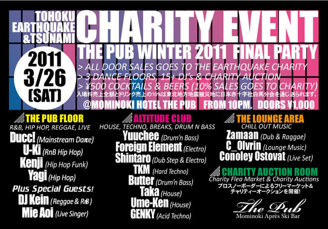 東北太平洋沖大震災チャリティーイベント&The Pubファイナルパーティー