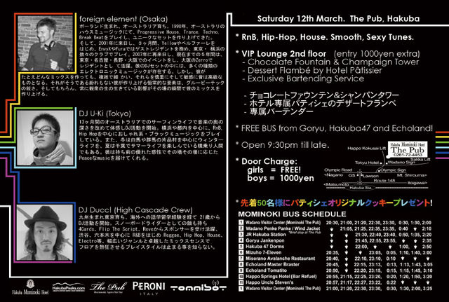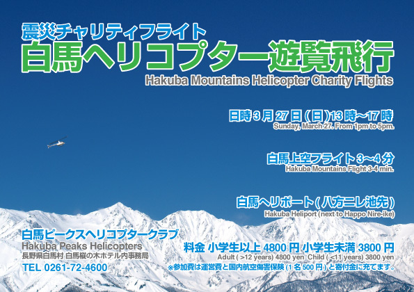 > 入場料売上全額とドリンク売上の10%は東北地方地震被災地に日本赤十字社白馬分会を通じ送られます。